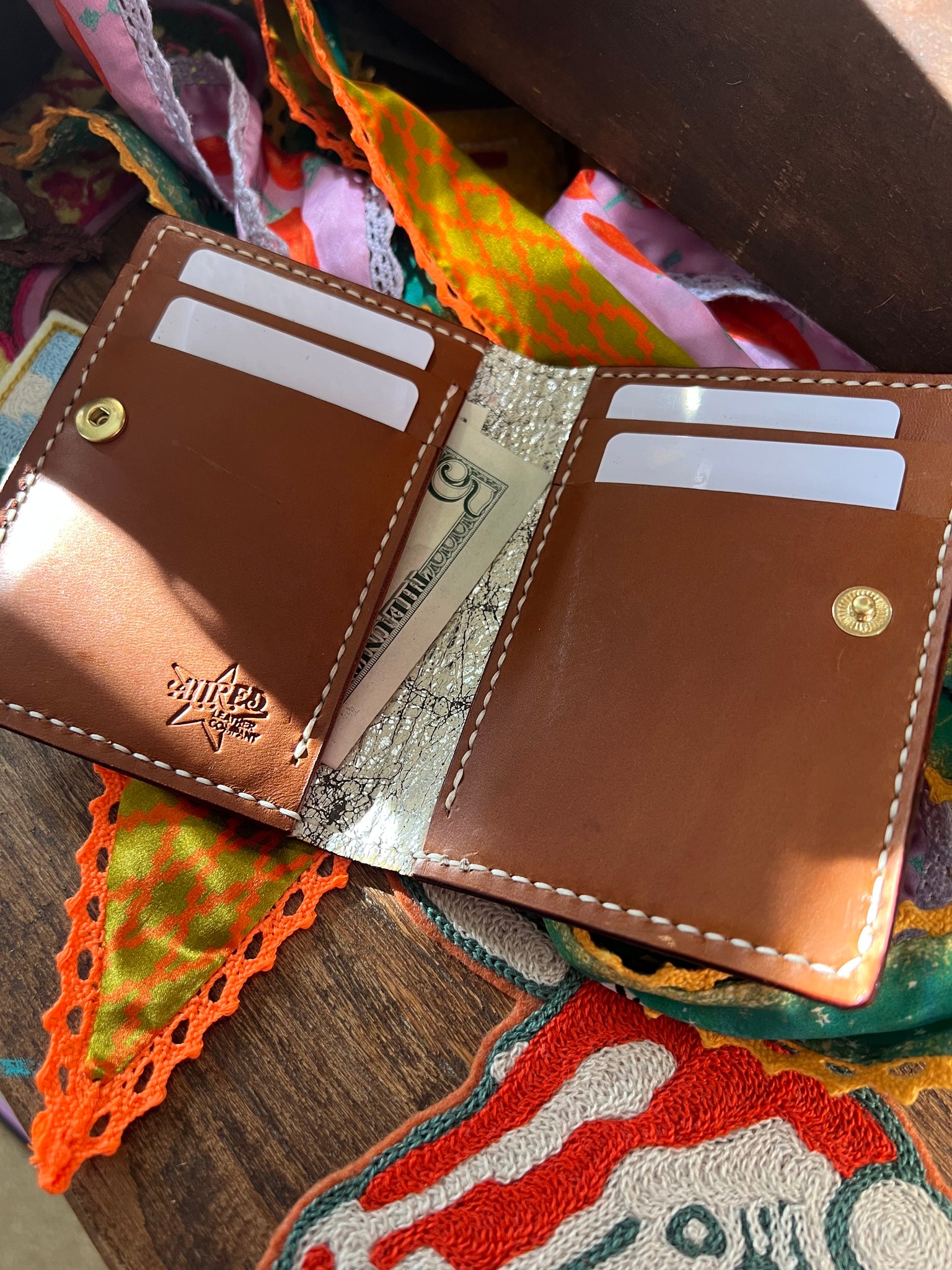 Four card slot, button snap wallet with two bill tuck backs. A step above roomier than the Snap Wallet, this wallet does more but still tucks away with ease in smaller purses.